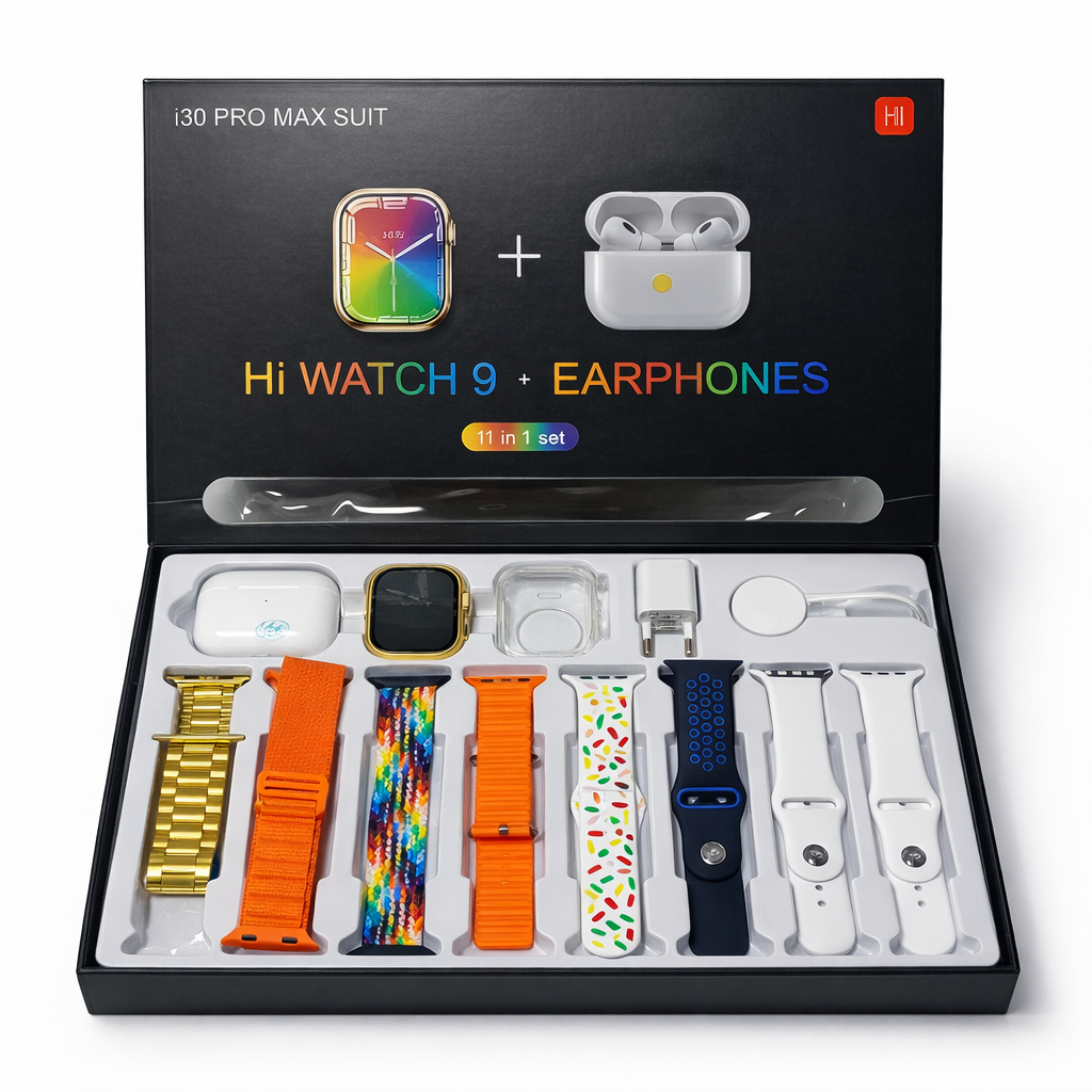 The i30 Pro Max Smart Watch Series 9 (11-in-1 Set) is not just another smartwatch — it is a complete smart lifestyle solution designed for people who want convenience, technology, and premium style in one powerful package.